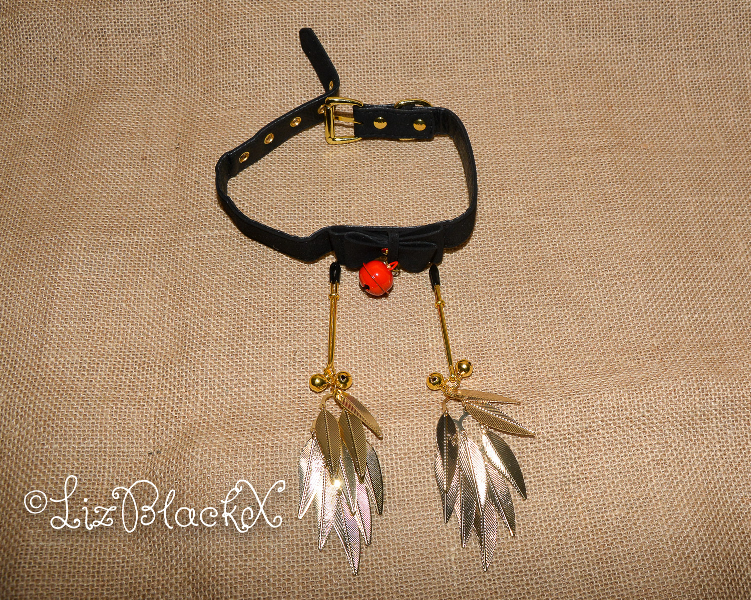 Day 5: Nipple clips and Feather Brush. This day holds two light BDSM items: nipple clamps and a feather brush for tickling. The brush is well-made and feels quite sturdy for only a feather tickler. The nipple clamps are really cool. Each clip holds a little bell and several feathers as decoration. I’m not often a fan of such over the top jewellery, but these look so attractive I feel like trying them out. The sliding closure of the clip ensures that it doesn’t have to be too tight and painful. They’re just adorable.